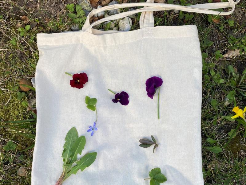 Vi skal eksperimentere med ecoprinting og undersøge, hvordan blade, blomster og andre materialer fra naturen kan give smukke farver og mønstre til tekstiler.