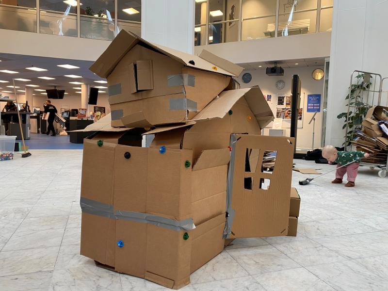 Tårnby HovedbibliotekVi bygger fra klokken 10.00 til 14.00. Du bygger lige så længe du orker. Du skal ikke have noget med, vi har både pap, gaffatape og Hubu-skruer.